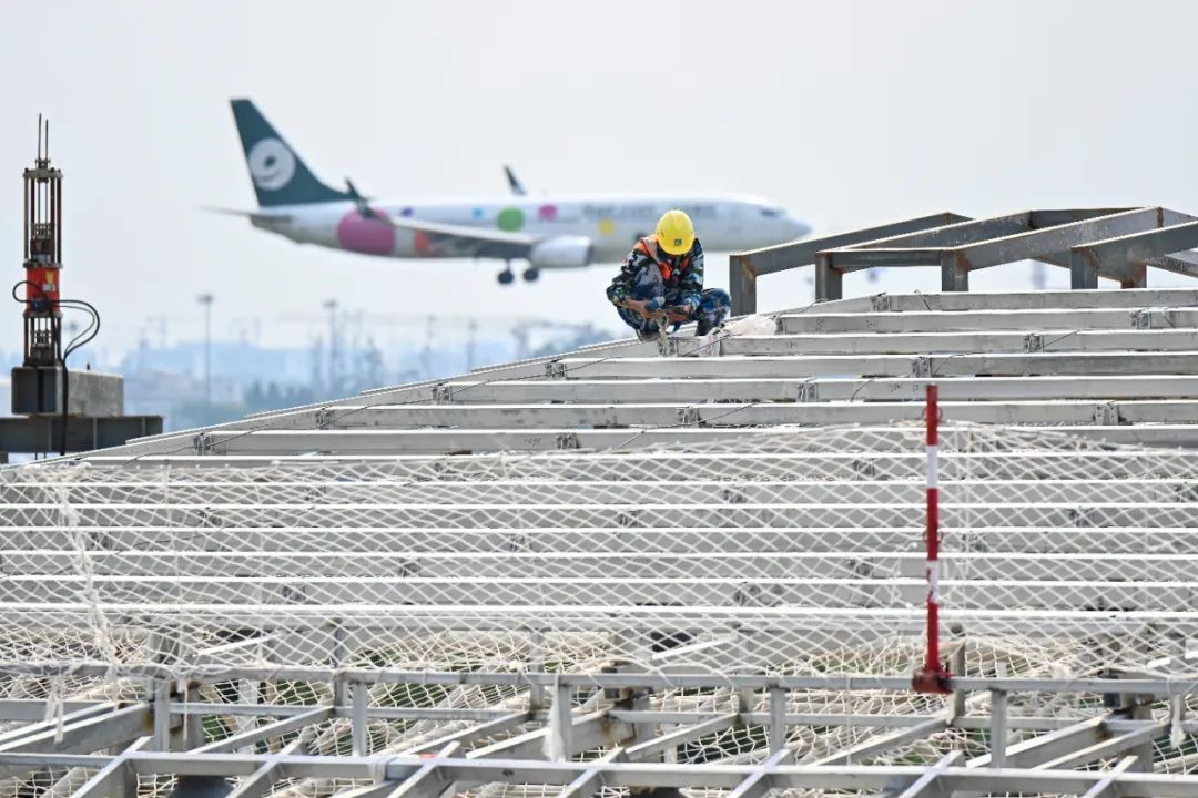 (资料图)工作人员在白云国际机场三期扩建工程T3航站楼项目内施工作业。中新社记者 陈骥旻 摄