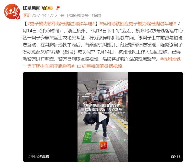 7月14日,杭州地铁工作人员回应称,已协助警方进行调查,警方已调取监控视频,后续将加强车站的现场监管。